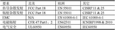除了满足WPT设备技术标准外,目前不同国家地区针对WPT设备的法律法规要求也不尽然相同。欧美国家目前主要基于现有法规框架,根据无线电源设备的不同构成部分和工作频段对其进行管理,大致的思路是将无线能量传输部分的功能参照工科医(ISM)设备进行EMC及安全方面的核准,同时将其通信功能部分按照无线电设备的要求进行管理。表4对不同国家地区的监管要求做了梳理总结。