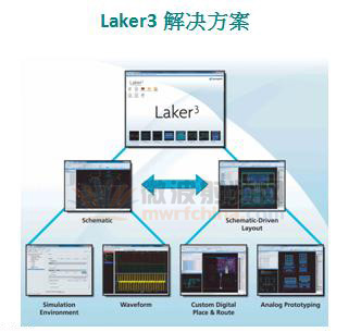 Laker³ 平台为所有基于OA的Laker产品,提供全新的交互式与现代化的软件基础架构,包括Laker 先进设计平台、 Laker定制版图系统、Laker定制布局器与绕线器 、与新的 Laker模拟原型工具。这个平台增强OA的效能,引进下一代的版图技术,特别为28纳米与20纳米的设计规则进行调校,并以互操作性制程设计套件(iPDK)与第三方工具整合,全力支持多厂商设计流程。