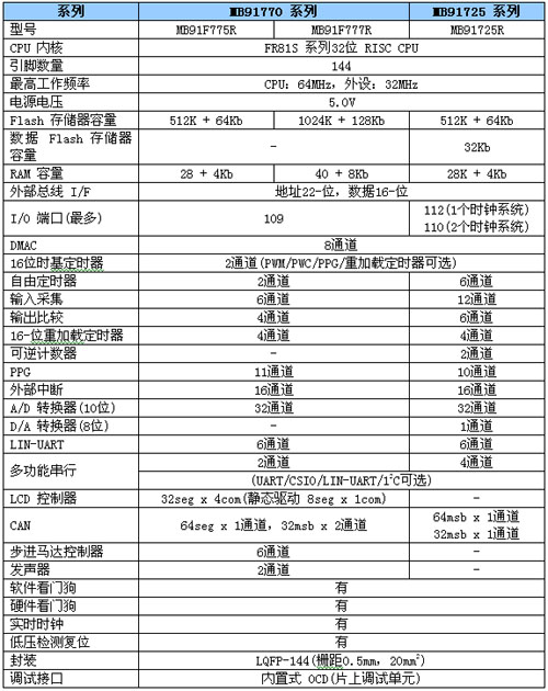 开发了面向仪表盘控制和车身控制应用的产品之后,我们会继续开发内置FR81S CPU内核的微控制器系列产品,包括面向马达控制应用的产品。