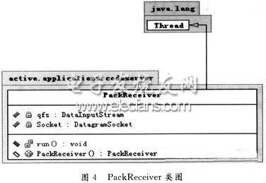 类PackReceiver()可以实现接收回应信包和主动节点中主动信包的接收。PackReceiver类图如图4所示。