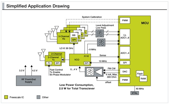 MPC577xK MCU系列采用MR2001 77 GHz封装雷达前端芯片组,为如自适应巡航控制、紧急制动系统、车道偏离警告和盲点检测等ADAS应用提供了一个完整的系统级雷达解决方案。