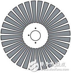 反射式的基本结构是在电机的旋转轴上加一个圆形的黑白相间码盘,很多都是粘在轮子上的(图8),离码盘很近的地方固定一个红外发射/接收一体模块,利用黑白色对红外线的吸收率不同来进行判断。红外线照射到黑色部分时,大部分被吸收,而无反射信号;红外线照射到白色部分时,大部分红外线被反射回来,而产生强烈的反射信号。当码盘随电机旋转时,红外接收端的输出信号便是一个由旋转速度决定频率的方波,进而我们便可知道此时电机的旋转速度。
