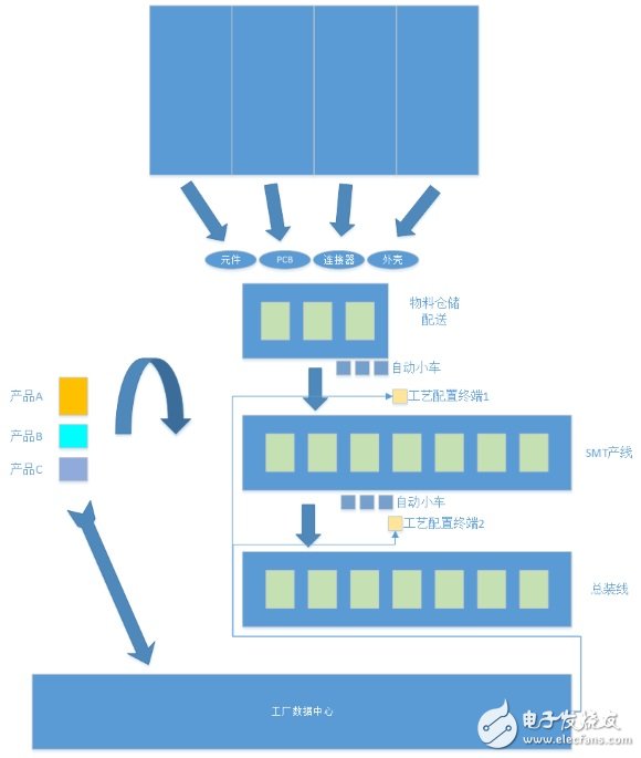 • 通过改变原有每个流程站的通信模式,将内部生产过程中产生的大数据可以随时进行交换。