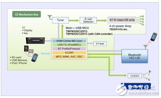 一个CD机制音响系统可以通过使用东芝的CD伺服处理器可以轻松升级到USB+ CD音响系统。东芝还提供CD伺服处理器,并且提供了防震能力。