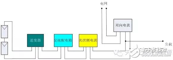 项目施工完成后需要等供电局并网接入,其中电表的接线方法根据不同地区也有两种方法,第一种接法如图11,因为很多家庭用户不会看逆变器,所以需要在交流配电箱输出端装一块计量光伏发电电量的电表。原用户电表改成双向电表,光伏侧电表的出线端接到该双向电表的出线端,用于显示用户自己用电和卖到电网的电量,多余的电反转计量。