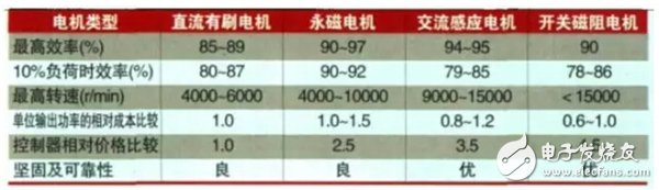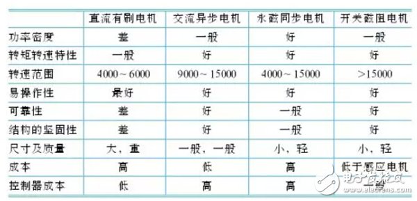 就目前发展水平,各类驱动电机基本性能比较如下: