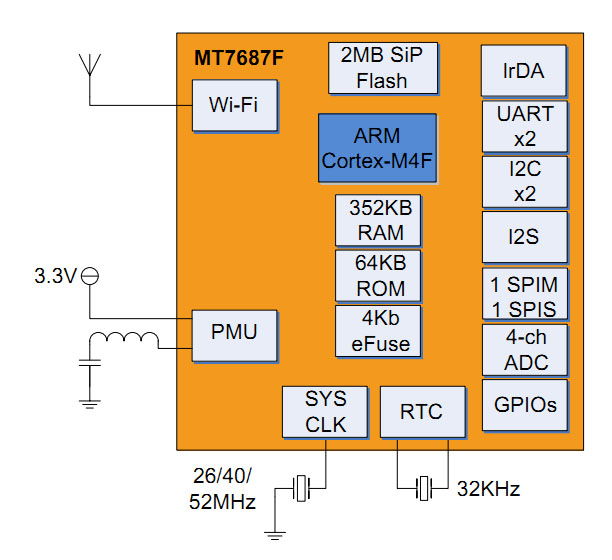 MT7687是联发科在2015年就推出的节能型系统级WiFi芯片,主打低功耗、高安全性,以及良好的扩展可编程性能。
