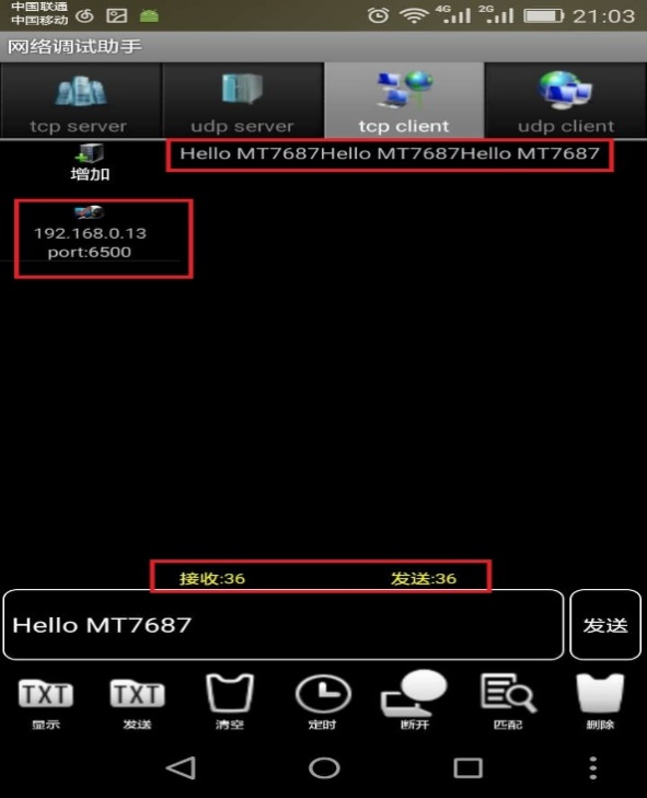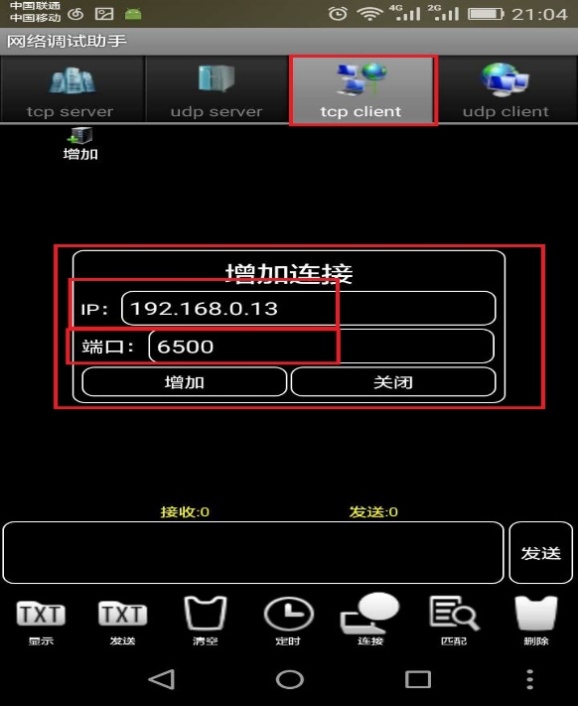 (2)手机端借助网络调试助手,作为Socket Client请求连接