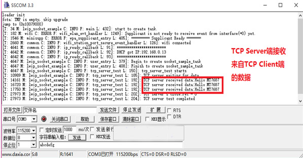 运行官方例程:lwip_socket。借助 WiFi STA模式测试代码。
