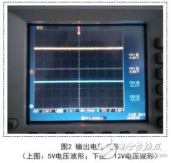 在额定负载情况下,当输入电压为220V时,实测开关电源的输出电压波形如图2所示。从图上可以看出,开关电源的输出特性良好,电压波动非常小。再测输出的纹波波形如图3所示,由图上可以看出,5V的纹波普遍在±100mV左右,12V的纹波在±100mV以下,效果理想。额定负载情况下,当输入电压为85V时,测试输出电压的波动和纹波均在允许范围内,未出现电源复位重启现象;当输入电压为265V时,测试输出电压的波动和纹波均在允许范围内,未出现电源复位重启现象;再对电源作保护功能的测试。使开关电源的输出过载或短路时,开关电源进入2.5s间隔的自动复位重启保护;输出负载正常时开关电源恢复正常工作。