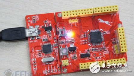 电脑连接,如下图所示,笔者手里拿到的板卡默认的是LED Blink的程序。