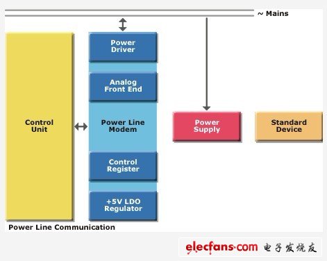 ST在带电器件之间提供窄带通信解决方案,而无需添加额外线路 。通过结构图,您可以在推荐的多种产品中自由选择,为您的电力线通信实现高性能。