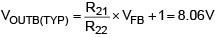 为了在OUTB端获得稳定的8V输出,需要合理选择反馈分压电阻(R22和R21)。选择R22 = 51KΩ (MAX16952数据资料推荐低边电阻R22 < 100kΩ),R21根据下式计算: