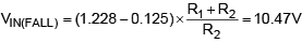 选择R1为170kΩ标准电阻,则当主电源超出11.67V时关断MAX15005,相对于常规电压12V,预留330mV的裕量。考虑到OVI比较器的滞回,可以按照下式估算电压下限,即当主电源电压下降到下式决定的数值时开启MAX15005: