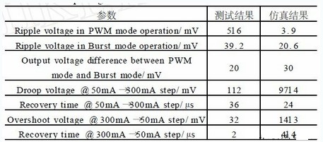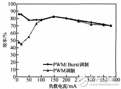 与通常提高轻载效率的方法相比,本文提出的Burst工作模式, 不仅具有较高的轻载效率, 还体现了与其他方法相比更优的负载调整率,且简化了外围应用电路设计的复杂性。
