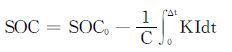 SOC估算采用了开路电压和安时 积分相结合的估算方法,对SOC估算精度的影响因素众多,温度、放电电流、循环次数等都会带来误差,有一种SOC估算公式: