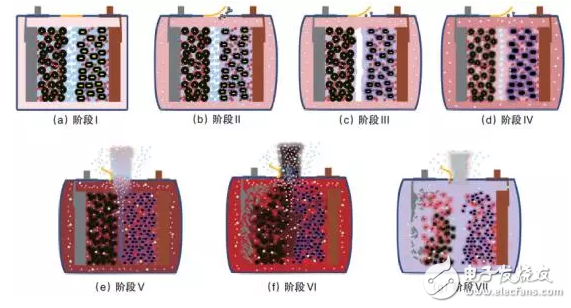 图5 某款三元锂离子动力电池热失控不同阶段的机理