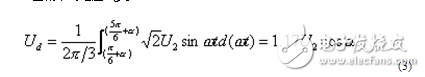 当α=0°时,Ud=Ud0=1.17U2,为最大;当α=90°时,Ud=0,反映在ud波形上是正、负电压区域的面积相等,平均值为零。可见大电感负载下,三相半波电路的移相范围为90°。