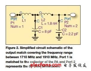 图2显示的是具有包注模TxM的功放部分的输出匹配,它有两种情况:不带屏蔽以及在包注模上施加屏蔽。该双端口模拟是采用Ansoft的3D EM软件工具HFSS实现的。