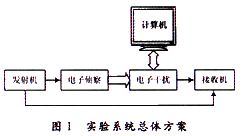 系统主要由控制计算机、发射机、电子侦察模块、电子干扰模块和接收机等五部分组成,如图1所示。计算机主要是用于控制与协调各个模块的工作和数据传输,决定系统各部分的工作模式并对工作状态进行实时监视。