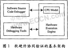 协同验证系统由一个硬件执行环境和一个软件执行环境组成,通过事件和命令,使用一些机制,在这两个环境间进行控制。软件的执行环境用于产生总线周期的序列,协同验证工具将总线周期转换成许多信号事件或者命令集,并驱动这些信号事件命令进入硬件执行环境,然后对总线周期响应进行硬件环境取样,这一响应又被传送回软件环境。同时,保持硬件及软件环境问的同步以便硬件或软件环境都可发现由于错失响应而导致有误的情形。