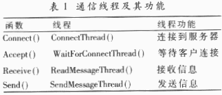 为了利用面向对象技术编程所具有的模块性强、便于修改、可移植性好等优点,本文还把表1中的线程封装为父类为CWinThread的自定义类CSOCKET.htm" target="_blank" title="Socket货源和PDF资料">SocketThread中。还自定义了一个叫CSOCKET.htm" target="_blank" title="Socket货源和PDF资料">SocketComm的新类,封装了一些函数,如CreateSOCKET.htm" target="_blank" title="Socket货源和PDF资料">Socket、ConnectToServer、WaitForClient、ReadMessage、SendMessage等,这些函数屏蔽了面向连接的通信程序的实现细节,如创建、连接、发送和接收等,在这些函数里,动态创建辅助线程。