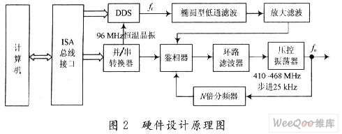 (3)输出频率fo的建立时间:T=TDDS+TPLL。式中:TDDS是改变DDS输出频率fDDSr所需的时间;TPLL是fDDS改变后,锁相环重新锁定所需的时间。为了使锁相环能很快地锁定,在锁相环的快捕带宽范围内变化fDDS,这样TPLL就是快捕时间。通常快捕时间很短,即使变化范围超出锁相环的快捕带宽范围,由于这是在上一次锁定的基础上重新进行的锁定过程,所以,锁定时间也会很短。这样,输出频率fo总的建立时间T就小,可以满足快速跳频的需要。