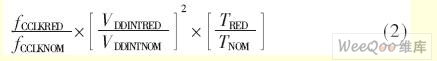 fCCLKRED为降频后的时钟频率,fCCLKNOM为正常状态下的时钟频率,VDDINTRED为降频工作后的电压,VDDINTNOM为正常状态下的电压,TRED为降频后工作时间,TNOM为正常状态下的工作时间。