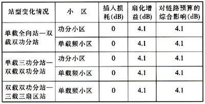 对于RASYS网络已建基站,当进行宏基站扇区改造时,从以上分析可以看出,由于扇化增益和功分器插入损耗这两方面原因,下行和上行链路预算将受到不同的影响。