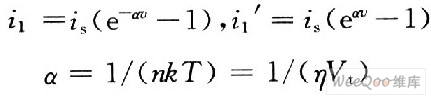 式中:n是理想因子;k为波尔兹曼常数;T为绝对温度;η是二极管的效率常数;Vt=T/16 000,是温度的等值电压。