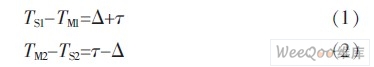 式中,τ为报文的传输延迟,△为从时钟相对主时钟的偏差。