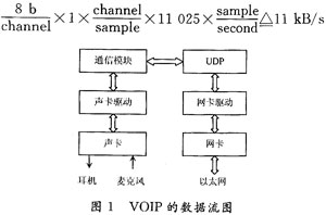上层是通信部分:声音数据在这里打包成分组通过网卡发送出去,从网卡接收来的数据在此解包并交给声卡驱动,数据经过以太网的发送和接收通过调用Socket来实现。