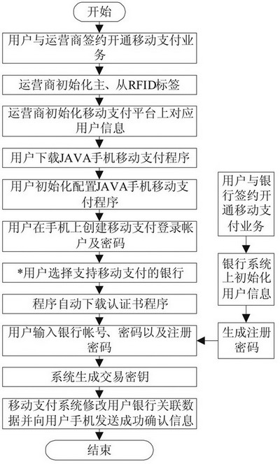 在移动支付平台上存储对应用户的主从RFID芯片序列号、发行流水号、手机号码关联码、业务支持类型等关键数据。