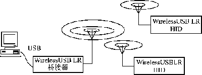 WirelessUSB LR 2Way网络中,用户主要采用多点到一点(multipoint to point)的拓扑来组建用户网络。HID与Bridge之间建立有双向数据通道,使得HID在发送数据的同时,能够接收Bridge传输来的Ack/Nak信息和数据,如图4所示。在该网络中的所有设备都具备收发数据的功能。WirelessUSB LR 2Way网络中允许多个应用设备同时进行无线传输,并且能够以无线方式把多达127个设备连接到主机(通常是1台PC)上,其中每个设备分时复用同一带宽。