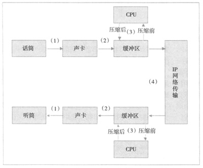由于以太网带宽较大距离较近,网络时延一般情况下小于1 ms,可以忽略不计,所以在局域网环境下的VoIP的时延主要是由语音编/解码时延、打包/缓冲时延和音频采集和播放时延构成的。