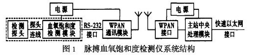 基于WPAN的脉搏血氧饱和度检测仪的系统结构如图1所示。