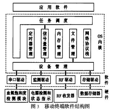 检测仪移动终端的软件是基于Webit510操作系统开发的。Webit510具有如下特点:面向8/16位低成本微控制器;完全抢占式事件驱动的固定优先级调度程序;支持256个优先级,相同优先级任务遵循FIFO调度策略;采用信号量机制实现同步或互斥共享;定时器管理支持一次性和周期性定时;精简、高效的动态内存管理策略;流设备管理;支持多级目录的文件系统;内置TCP/IP协议栈;支持运行任务的单步调试。