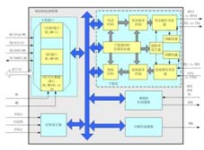 时钟发生器为芯片提供时钟,可以用CLKSEL引线选择从晶振还是外部时钟源获取时钟。子通道逻辑部分处理各个的数据接收和发送。数据发送的处理过程为:主机接口将从主口总线发送来的数据进行处理后传送到相应的子通道FIFO,FIFO里的数据经过流量控制逻辑后,在波特率发生器的作用下,通过发送移位寄存器顺次将数据发送到TX串行输出信号线上,接收数据与此正好相反。子通道处理模块中,控制寄存器用于对各个子通道进行设置,IR编解码器用于对红外信号进行编解码,子通道流量控制器用于子通道传输数据时的自动流量控制。
