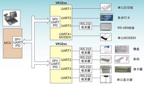 图2:VK32系列产品在嵌入式税控POS平台设计中的应用。