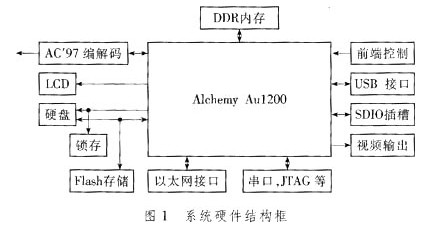 笔者选用AMD公司的Alchemy Au1200作为多媒体处理器,其功耗低(<400 W@400 Hz);支持多种视频格式,可扩展到大型显示屏(1024×768),不需外部DSP,不需多媒体转码。