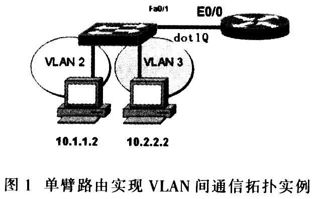 如图1所示,单臂路由器是指使用路由器的一个端口连接多个VLAN,实现方法是配置多个逻辑子接口。路由器与交换机之间通过外部线路连接,该外部线路只有一条。但在逻辑上是分开的,需要路由的数据包通过该线路到达路由器,经路由后再通过此线路返回交换机进行转发。因此。该拓扑方式称为单臂路由,即:包从某一个口进去,则就从该口出来。