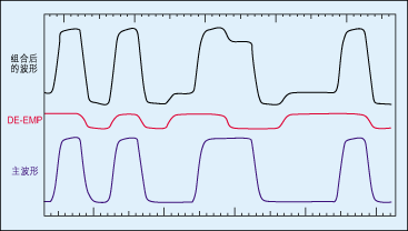 由于蓝色和红色晶体管在输出引脚处是连接在一起的,因而共同产生黑色的波形,该波形看起来类似于带预加重的信号。结果波形能在高频转变位正确地切换较高的幅度,并在较低频的非转变位降低幅度。