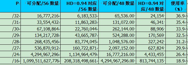 主机密度比率(HD-Ratio)=log2(实际分配的/48数量*256)/log2(16777216)(以/48分配)