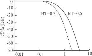 有关,也就是说和高斯滤波器的3dB带宽B有关。通常将高斯滤波器的3dB带宽B和输入码元宽度T的乘积BT值作为设计高斯滤波器的一个主要参数。BT值越小,相邻码元之间的相互影响越大。理论分析和计算机模拟结果表明 。BT值越小,GMSK信号功率频谱密度的高额分量衰减越快。主瓣越小,信号所占用的频带越窄,带外能量的辐射越小,邻道干扰也越小。