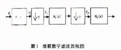 由于窄带数字中频处理中输入信号的抽样率很高而且要求抽取滤波器的通带带宽和传输带很窄,这将使滤波器的节数很大,运算效率很低。因此,为了有效地实现抽样率转换,本文将采用多级抽取的方法。由于将滤波器分解成了多级,采用不同形式的数字滤波器进行抽取,使每一级滤波器的相对过渡带大大增加,相应每一级滤波器的节数大为减少,因而可大大减少滤波的运算量与滤波器系数的存储量。