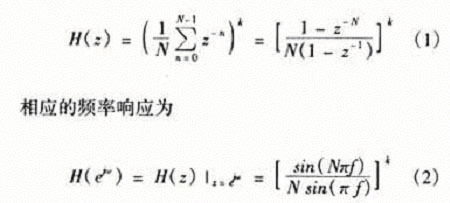 CIC滤波器是一种线性相位低通FIR滤波器,其系数均为1,实现起来较为简便,但研究表明,这样得出的滤波器的阻带衰减较小,不能满足实际需要。为了提高滤波器的阻带衰减,采用CIC滤波器的修正形式: