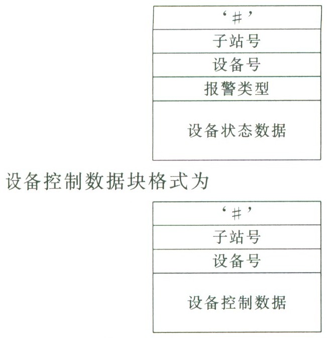 设备状态数据块或控制数据块可任意组合到用户数据域中。标志字符指明用户数据的类型。例如,是采集器向管理机发送的设备状态数据块组合,还是管理机向采集器发送的设备控制数据块组合。