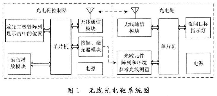 针对这个问题,查阅了许多现有的光电靶产品,有的是实弹射击的测量装置,使用的方法多数是平行光幕加光敏元件,也有的是采用单光幕,还有的是瞄准训练器,功能都比较完善,但大部分都体积比较大,重量重,只能固定使用,很难移动。针对部队瞄准训练的实际需要,这里研制了一套电路简单、体积小、重量轻、造价低、便于移动和自动报靶的无线光电靶系统,较好地解决了日常训练中的问题。
