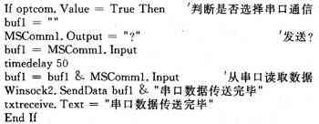 本系统以串行通信为备用通信方式,本地端PC通过串口与单片机通信的VB源程序如下: