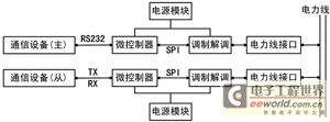 信号调制与解调以及对信号的自适应平衡放大、滤波及与微控制器的通信等功能由电力线载波芯片完成。电力线接口则起到耦合、隔离、滤波与保护的功能。